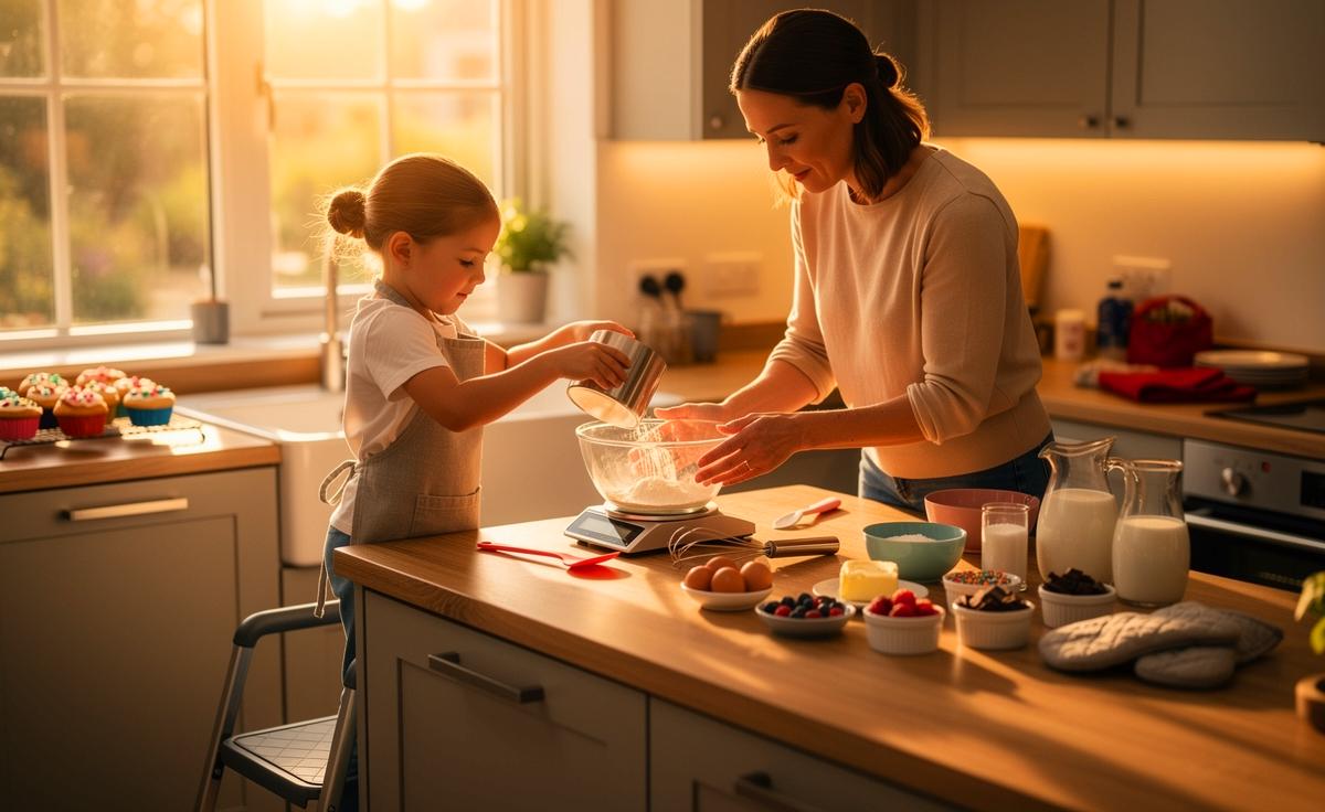 Im Alter von 3–5 Jahren stehen Gießen, Streuen, Kneten und Ausstechen im Fokus; es geht um Feinmotorik, Wortschatz zu Texturen und Düften sowie erste Regelbefolgung. Zwischen 6–8 Jahren übernehmen Kinder das Zutaten abwiegen, Messen, eigenständiges Rühren und das Verfolgen kurzer Sequenzen; mathematische Grundkompetenzen (Mengen, Brüche) und Lesetraining werden integriert. Von 9–12 Jahren kommen Rezeptplanung, Ofenbedienung unter Aufsicht, kreative Variationen mit Gewürzen oder Toppings sowie das Anleiten jüngerer Geschwister hinzu. Messbare Marker sind etwa ±2 g Genauigkeit, das Erinnern von drei bis fünf Schritten und das selbstständige Beheben kleiner Pannen. Kreativaufgaben wie Themengebäck oder Deko-Designs werden nach Originalität und Essbarkeit bewertet, nicht nach Perfektion, wodurch Mut zum Experiment wächst.